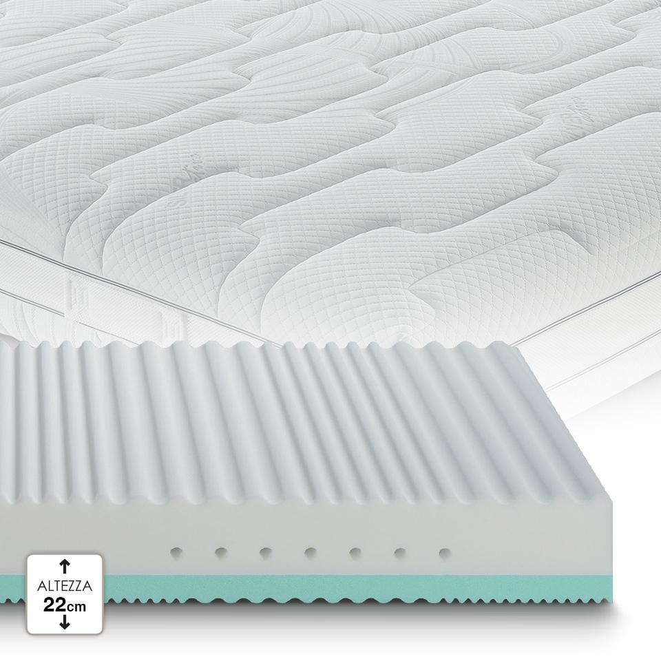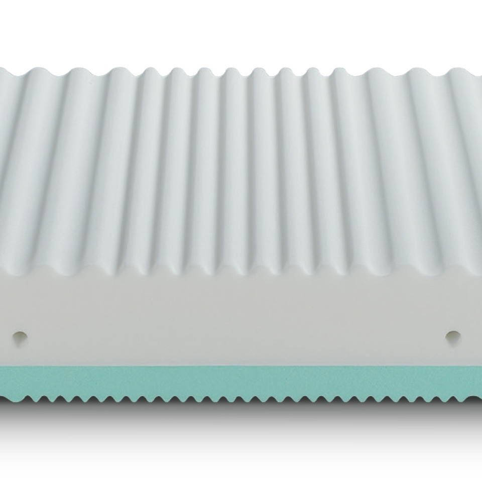 Comfort accogliente, la superficie di contatto ad onda dal lato in Water Foam, traspirante ed adattabile, offre un morbido supporto al corpo.