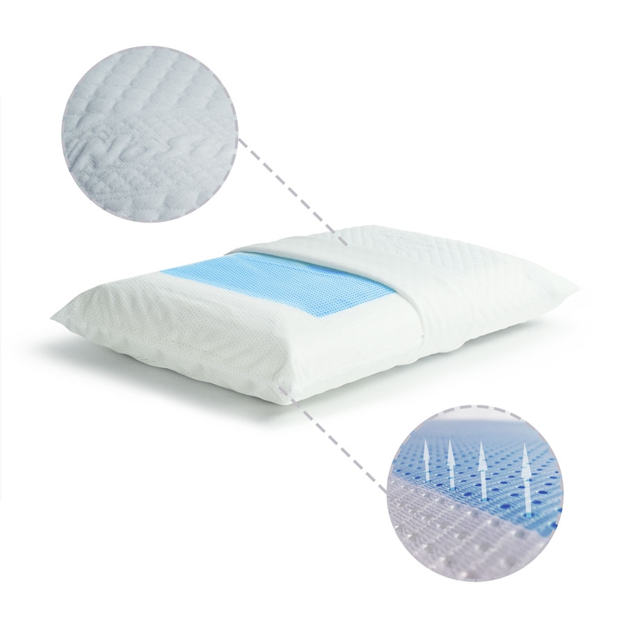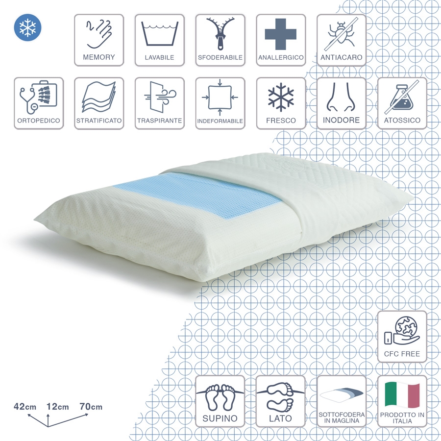 Cuscino in Memory Gel ad alta densità, schiuma viscoelastica a lenta memoria, termosensibile ed automodellante.