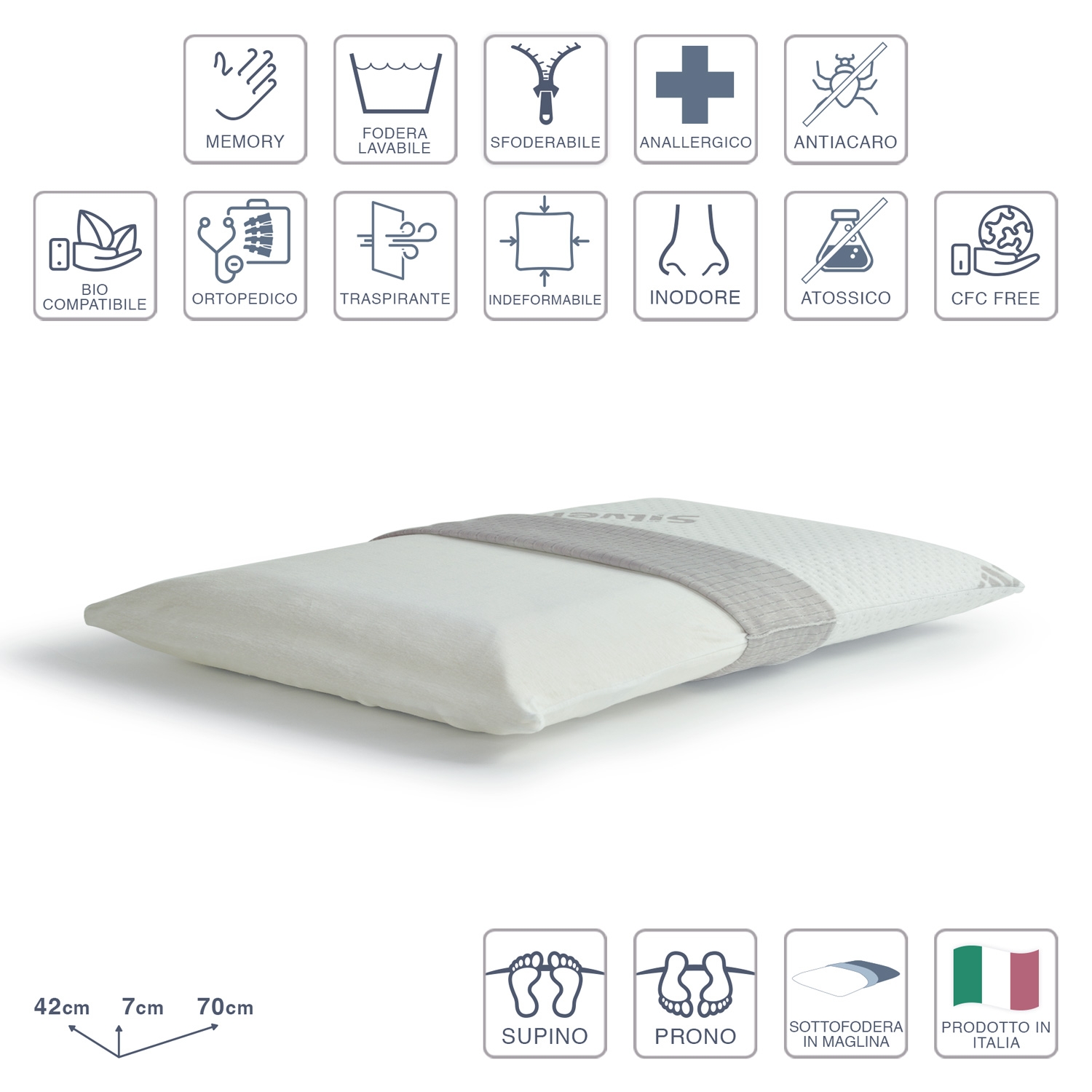 Soluko | Cuscino Guanciale Memory Classic h 7 Silver - I vantaggi