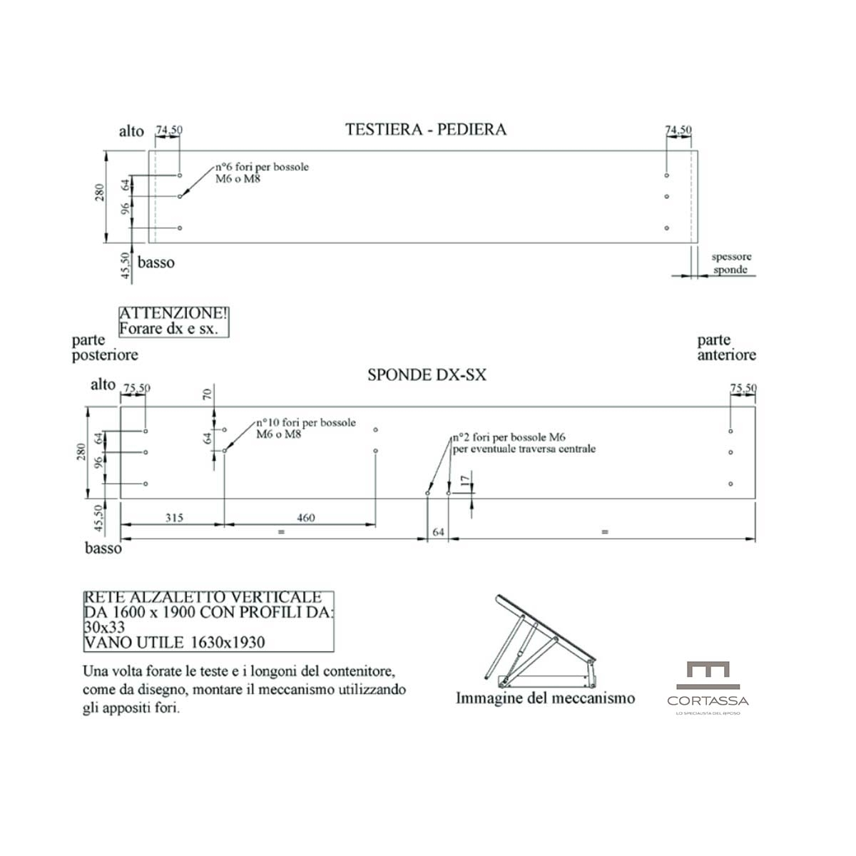 Ogni confezione comprende una coppia di aste e pistoni, universali, adatti ad ogni misura di letto (singolo, matrimoniale, una piazza e mezza) e ad ogni marca e modello.