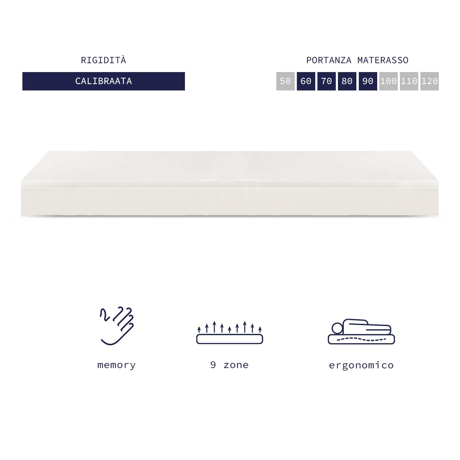 - Rigidità / portanza: CALIBRATO (H1-2-3), indicato ca. 60–90 kg